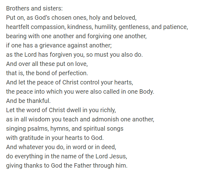 For our Lectio Divina practice, we read more deeply Colossians 3:12-17