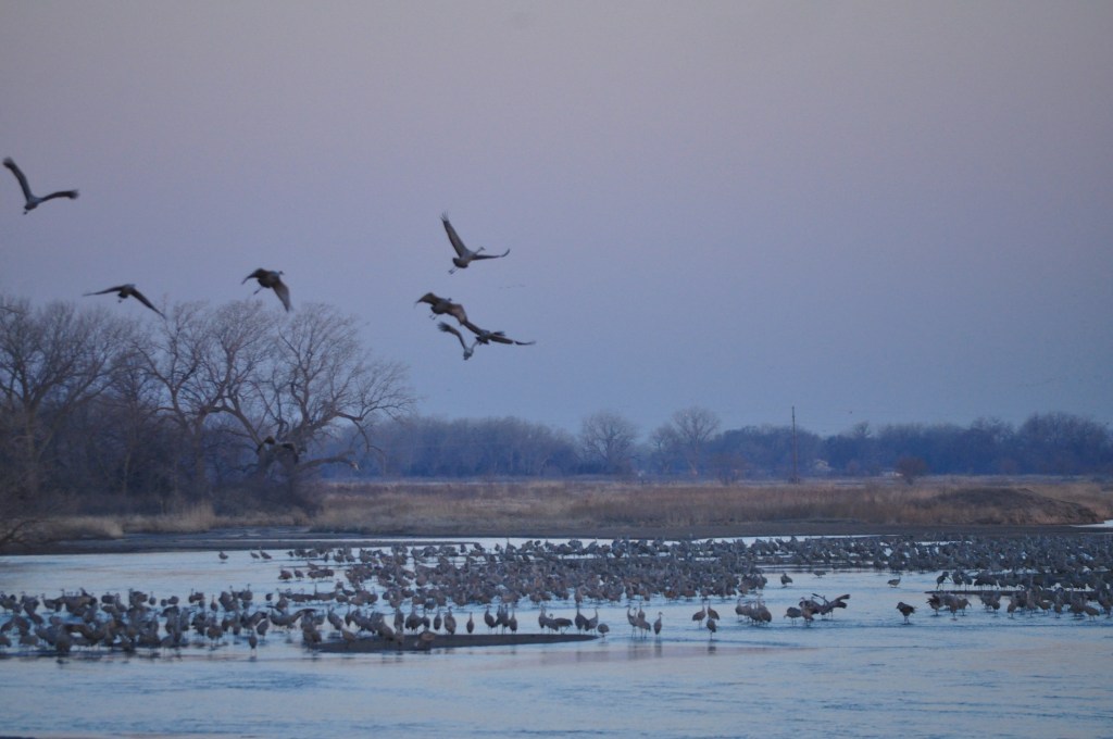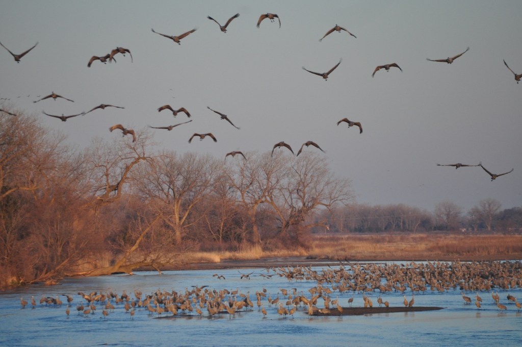 Every year 400,000 to 600,000 sandhill cranes—80 percent of all the cranes on the planet—congregate along an 80-mile stretch of the central Platte River in Nebraska from mid-February until mid-April. For more information about the Sandhill Crane Migration: