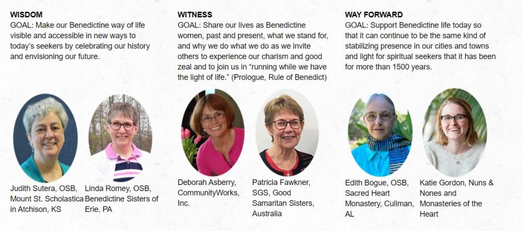 GOAL: Share our lives as Benedictine women, past and present, what we stand for, and why we do what we do as we invite others to experience our charism and good zeal and to join us in “running while we have the light of life.” (Prologue, Rule of Benedict)