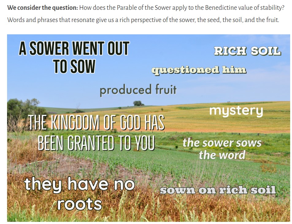 During the first week’s session, we connect with over 140 participants to learn about the ancient practices of Lectio Divina (sacred reading) and Visio Divina (sacred seeing) using the Gospel reading, Mark 4: 13–20 and the Sower illumination from The Saint John’s Bible.