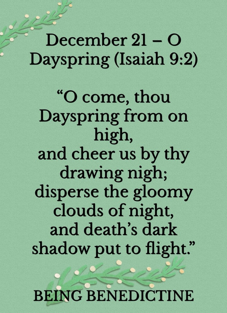 Feel free to download and share any of the images in this reflection, or follow Being Benedictine on Facebook to share daily posts. Join the monks of St. John’s Abbey for each of the O Antiphons as Benedictine monks have done for 1300 years.