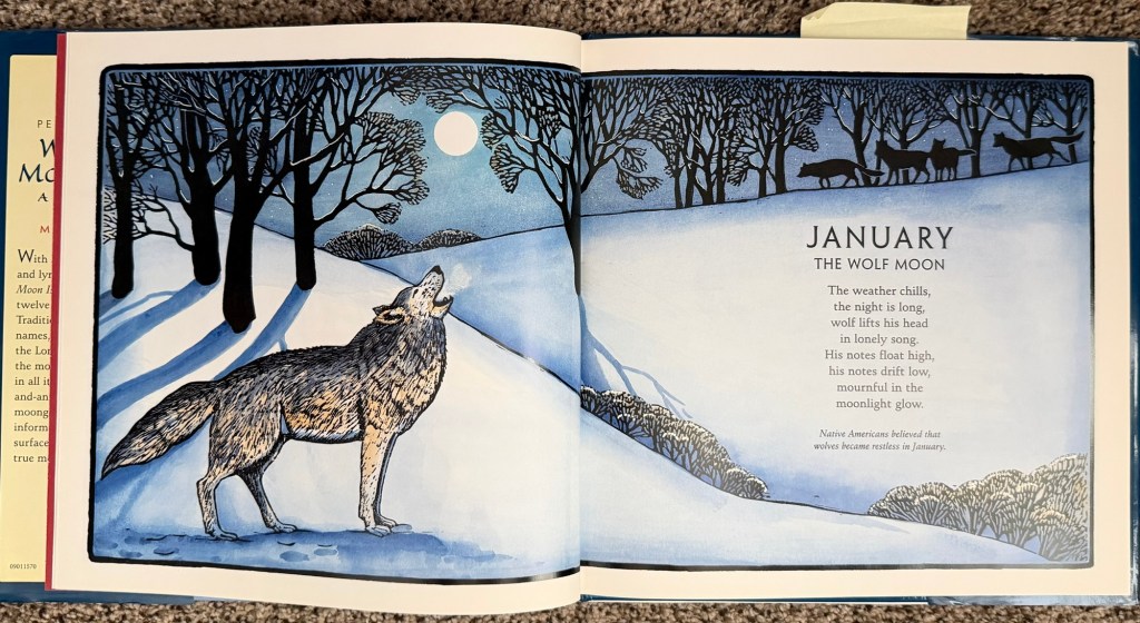“Many Native American peoples, and later the colonists who lived beside these winter lands, noticed how the wolves’ voices grew strongest when the year was at its emptiest. Food was scarce, snow lay deep, and the nights stretched wide and unbroken. And so this moon—January’s full moon—came to be known as the Wolf Moon, a name born from the simple truth of those winter evenings: wolves calling out to one another through the dark.” –Friends of the Forest
